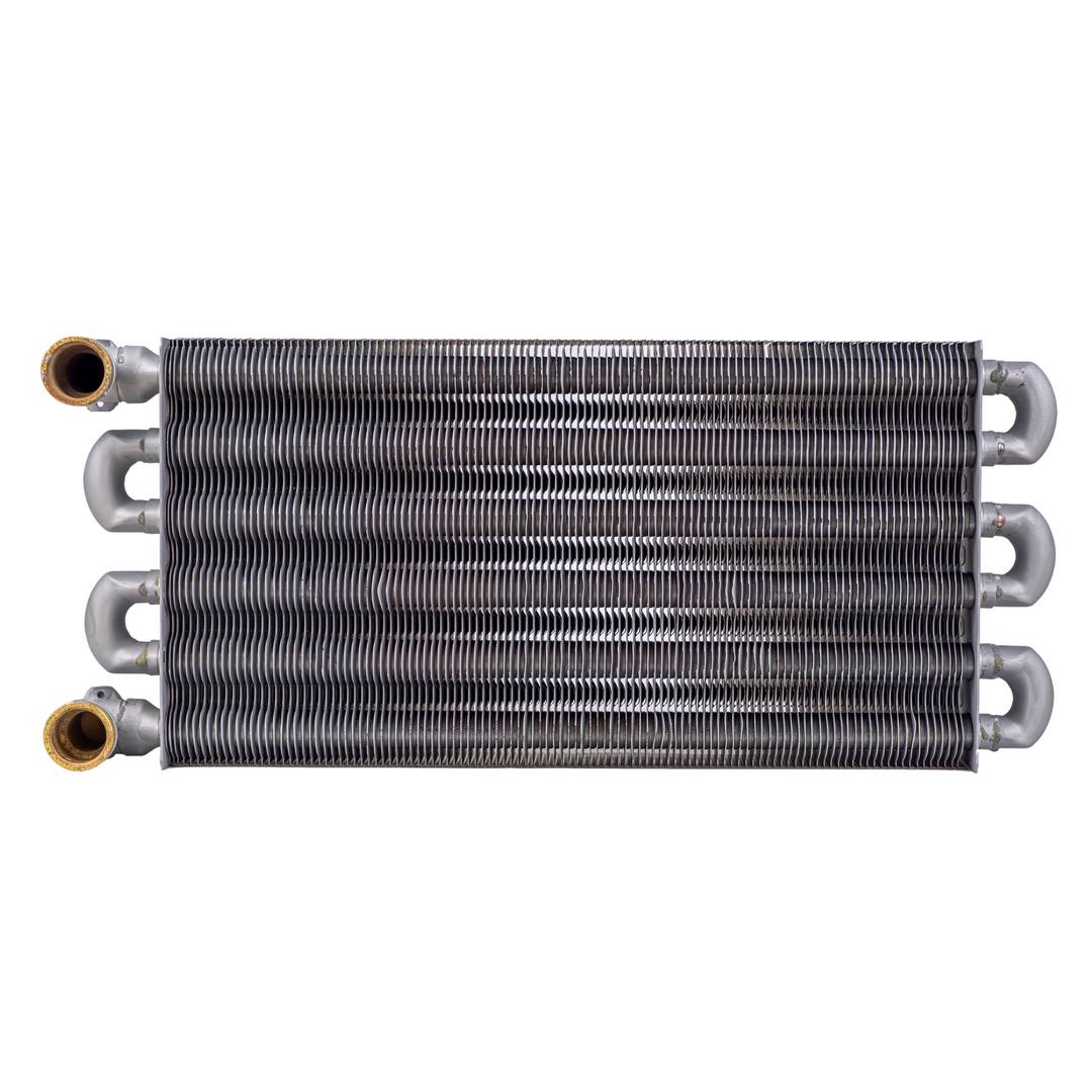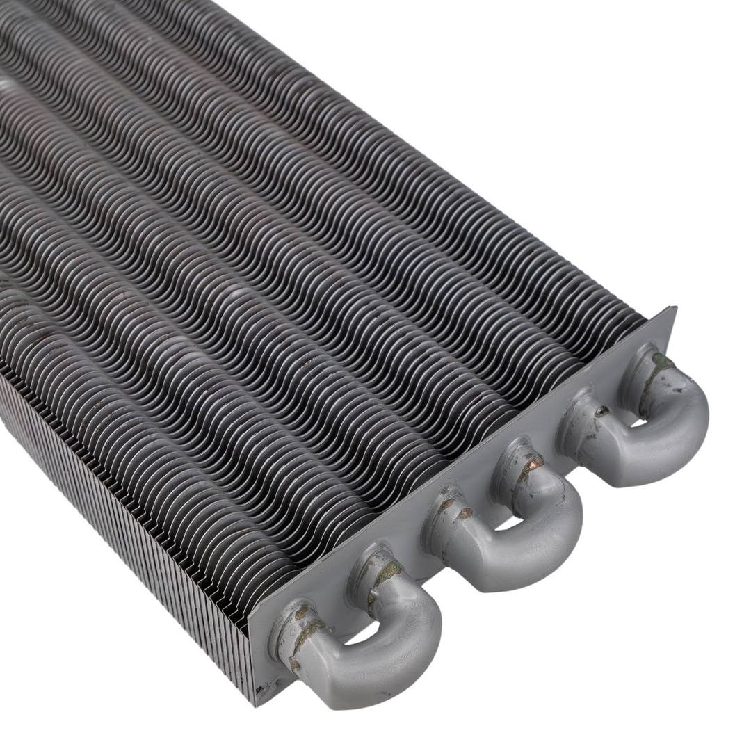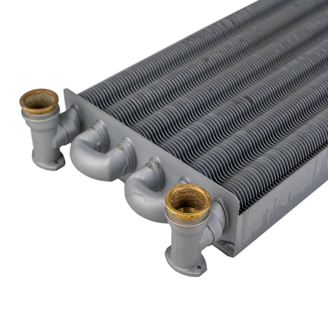 Передает тепловую энергию сжигаемой в камере сгорания газовоздушной смеси теплоносителю посредством теплопроводности. Альтернативное название - монотермический теплообменник.